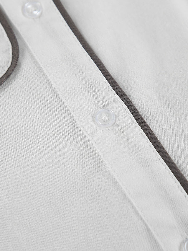 Black an White Contrast Cotton and Linen Shirt and Shorts Two-piece Set